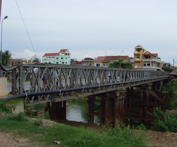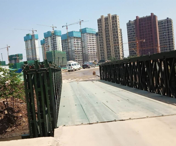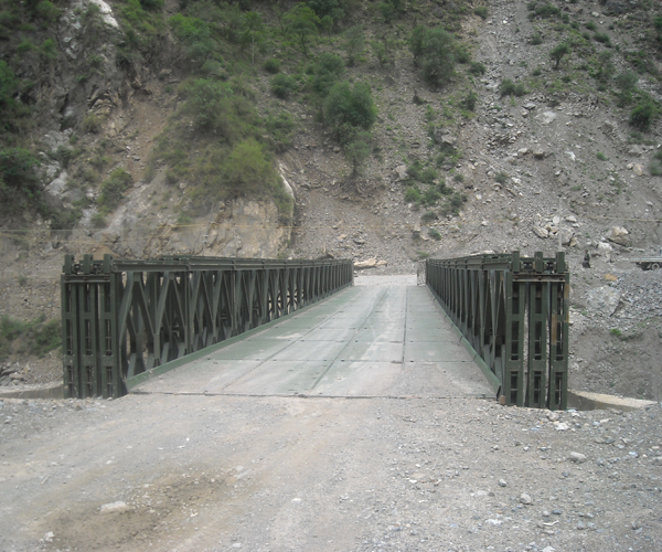 HD200型装配式钢桥是参照英国美贝公司设计,由中交公路规划设计院设计开发的新一代钢桥。 HD200型装配式钢桥从外观上看与"321"装配式钢桥相似,只是将桁架高度提高到2.134米。它采取加强弦杆间的接头与桁架间的接头错开布置,减小因销孔间隙引起的非弹性变形,并采用预拱的方法,大大减少桥梁跨中竖向挠度。螺栓连接构件采用导向套定位固定的方法增加了产品连接精度,导向套受剪,螺栓受拉,提高了螺栓的使用寿命,保证了装配式钢桥的安全性。抗风拉杆制作成整体式,并与横梁连接,提高装配式钢桥的整体稳定性。水平支撑架与桁架片之间是跨接固定,这样可保证整桥没有侧弯,整桥架好后并带预拱度。HD200型装配式钢桥除可组装成单车道桥梁外,还可组装成双车道桥梁,从而扩大了桥梁的使用范围。适用于汽车-10级、汽车-20级、HS15、HS20级、履带-50等荷载设计。